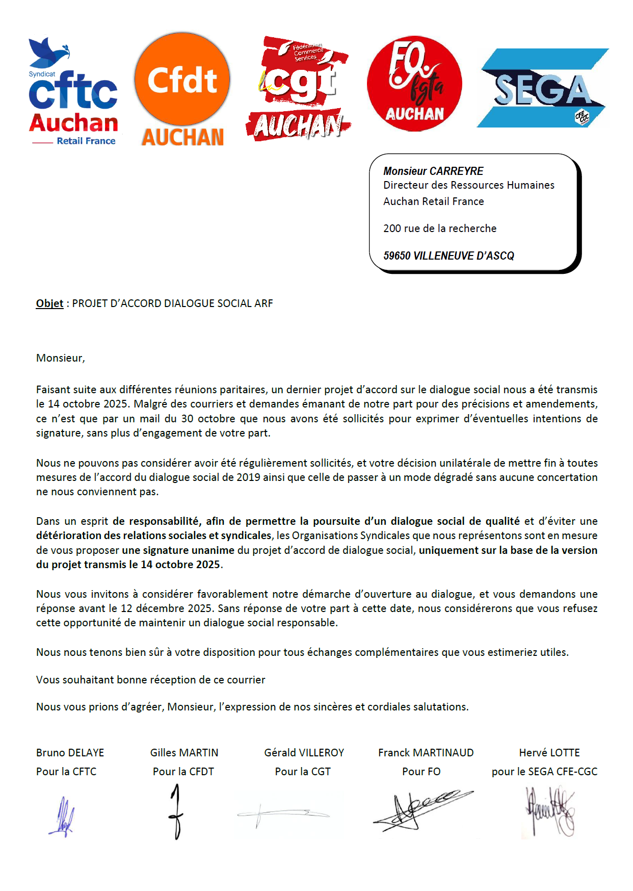 Courrier intersyndical à la DRH : projet d'accord du dialogue social (5/12/2025)