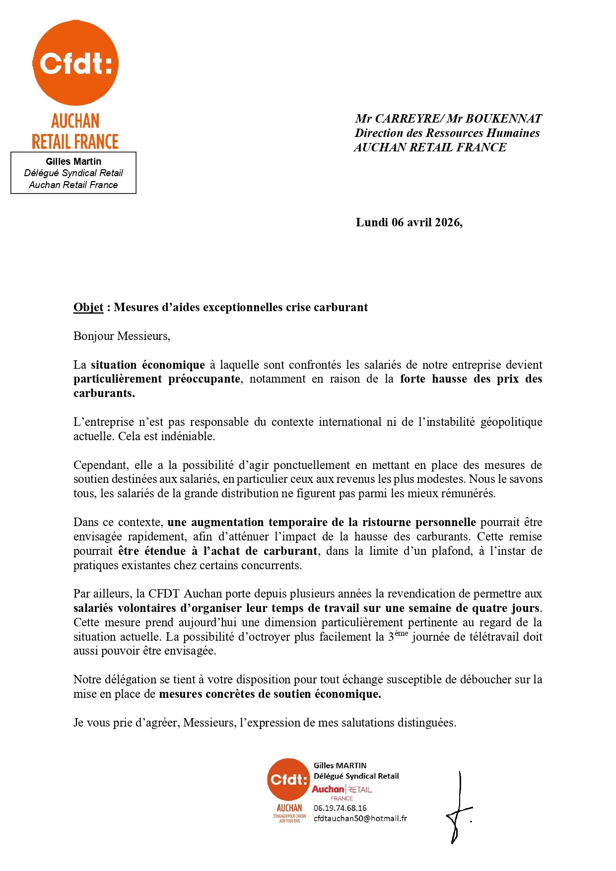 Crise carburant : la CFDT interpelle la DG. Des mesures doivent être mises en place pour soutenir les salariés (7/04/2026)